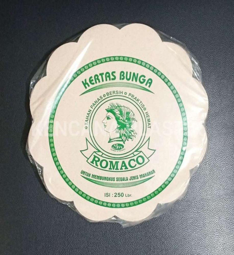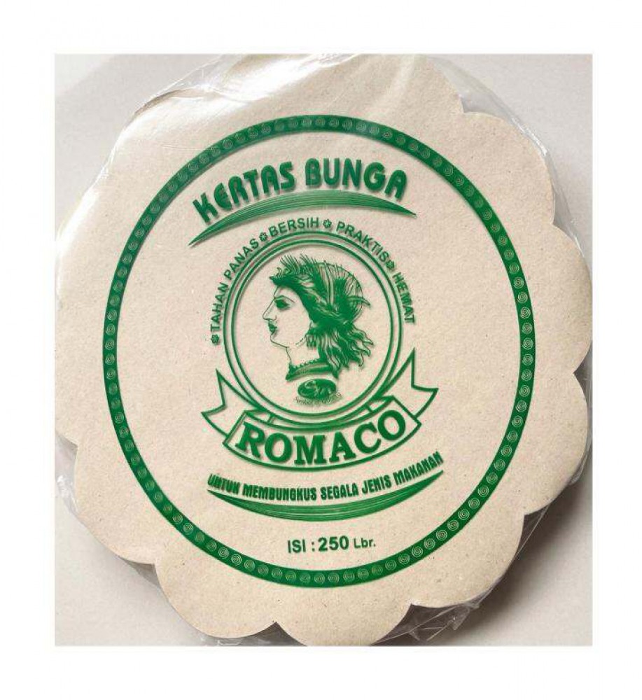 Kertas nasi bulat berbentuk bunga cocok untuk alas pada piring rotan atau piring lidi jadi tidak repot cuci piring lagi