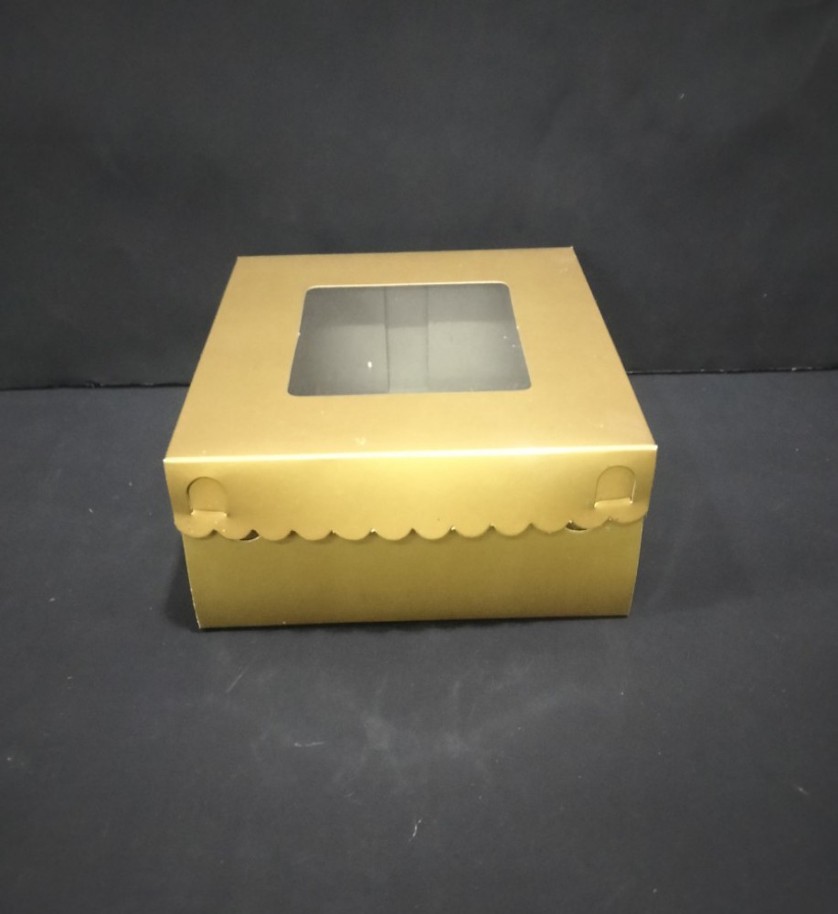Dus kue dengan mika transparant di atas box agar kecantikan kue bisa terlihat. size : 18x18x7,5cm bahan : karton pelapis : laminating, jendela plastik